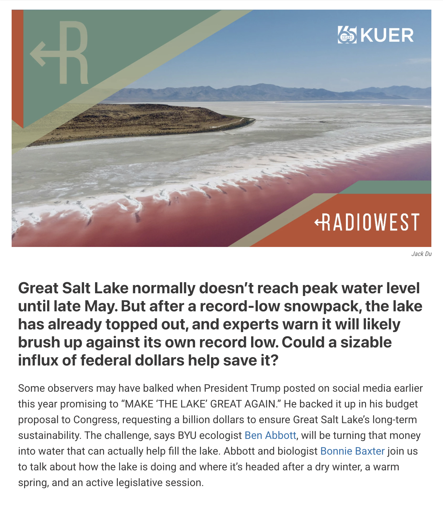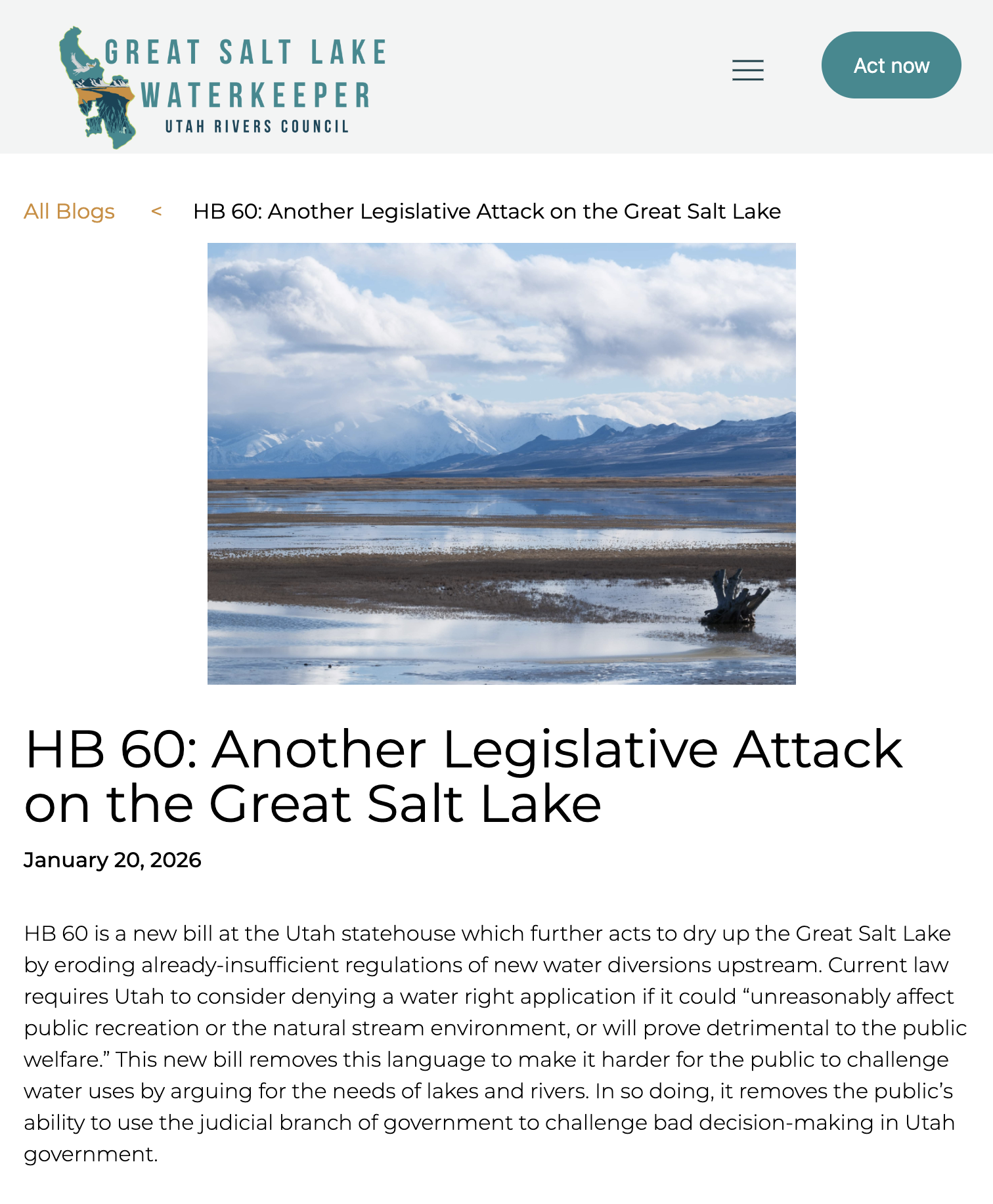 People of many faith traditions are deeply committed to saving our Great Salt Lake. We share a belief that caring for the natural world is a sacred responsibility. Protecting our Great Salt Lake is not only an environmental imperative—it is a moral and spiritual calling to act individually and collectively.