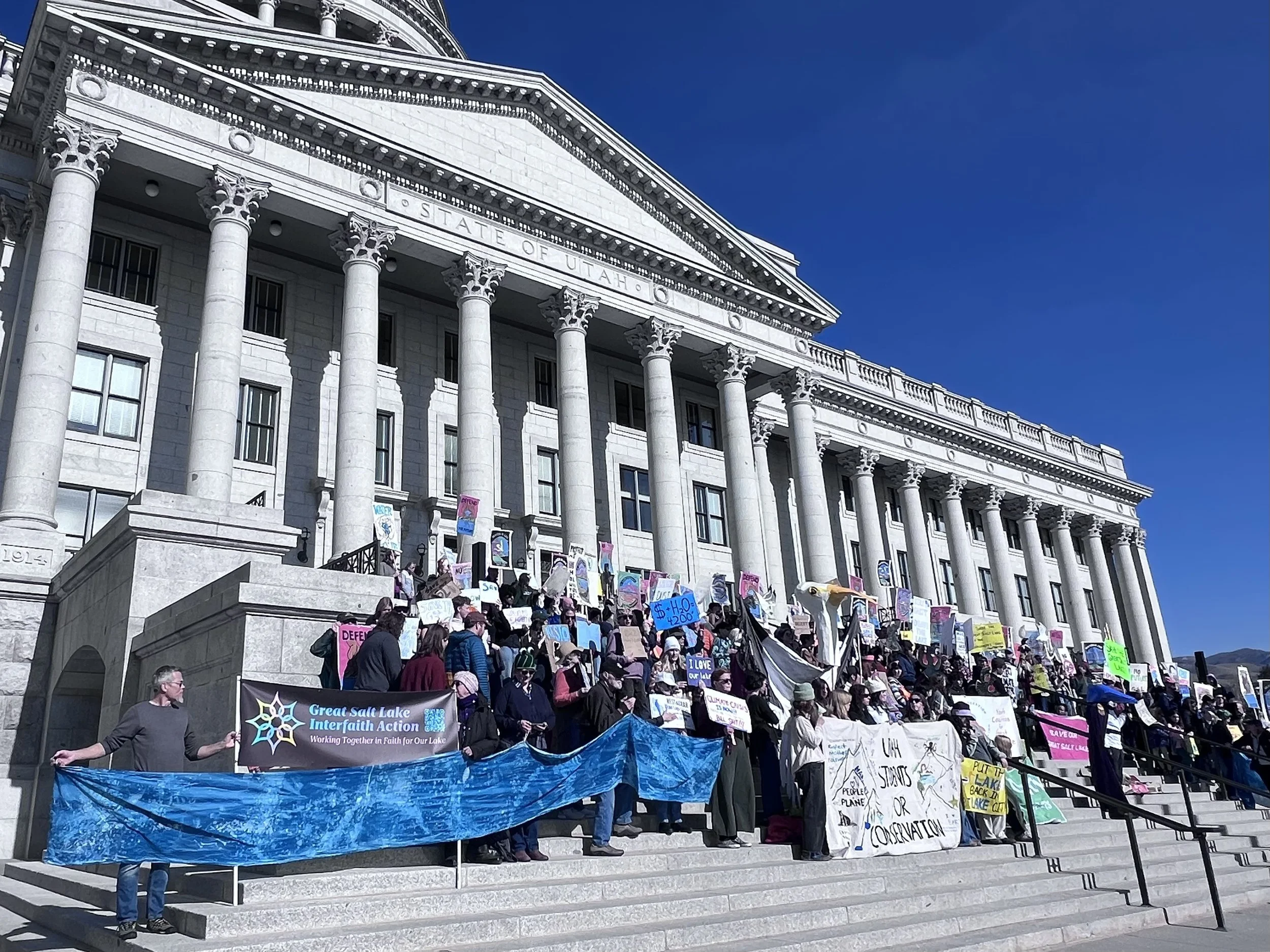 February 2023: “The Utah Capitol’s rotunda west steps were crowded Thursday morning. Members from various faith communities held signs reading ‘defend our future.’ Front and center, a red and blue banner: ‘Save Our Great Salt Lake.’” Read entire Salt Lake Tribune article